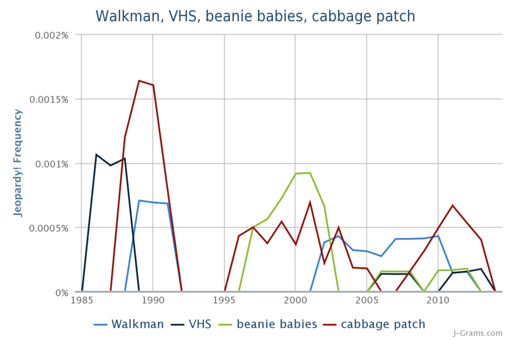 As it turns out, the show itself is nostalgic too. Fads that appeared and quickly faded actually became fodder for Jeopardy!