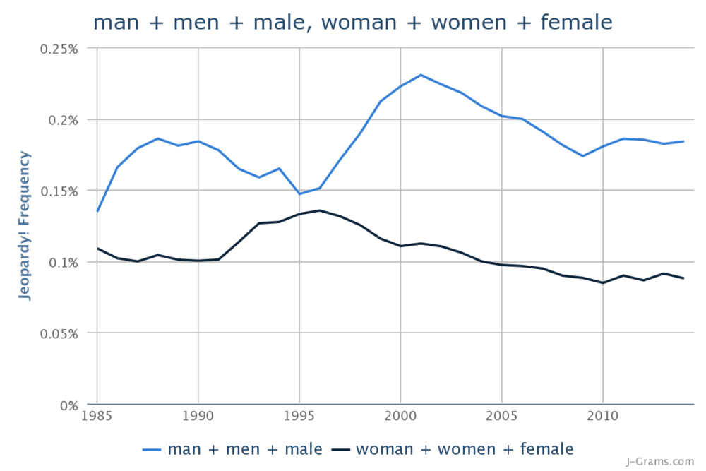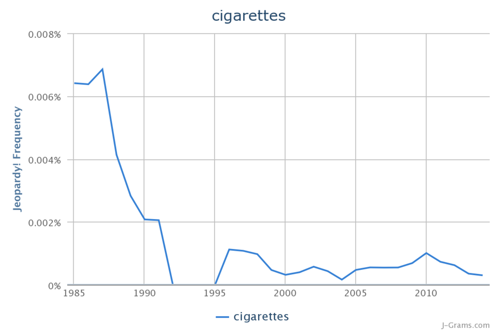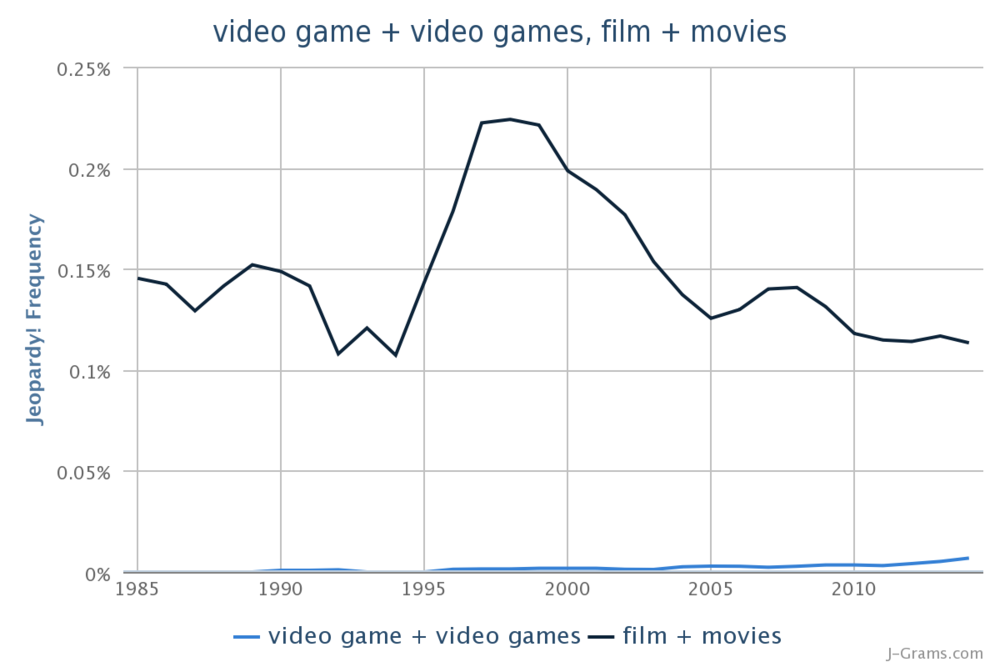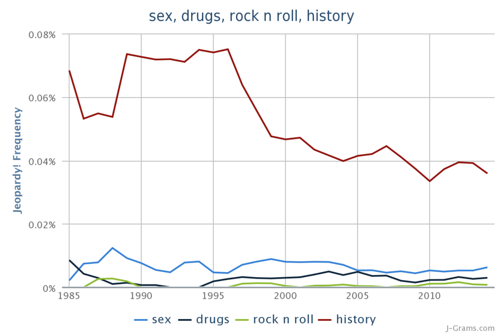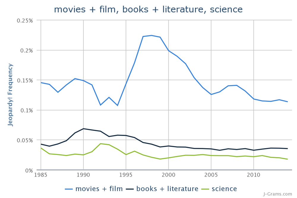 Before we get carried away, lamenting some uniquely “millennial” decline, we should keep in mind that lighter entertainment has always dominated on Jeopardy!: