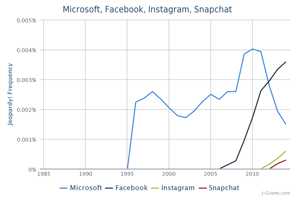 In a world of ascendant tech companies, the old king, Microsoft, seems to be on its way out—at least in the land of Trebek.